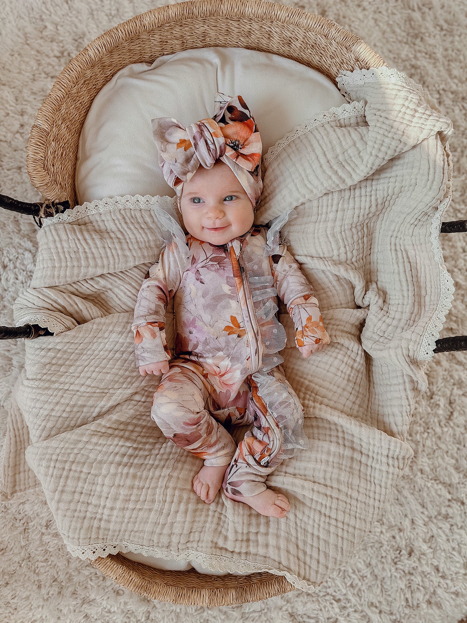 Mix & Match Magic: Pair it with our matching 'Flower Story' swaddles and topknot headwraps to complete the look.
