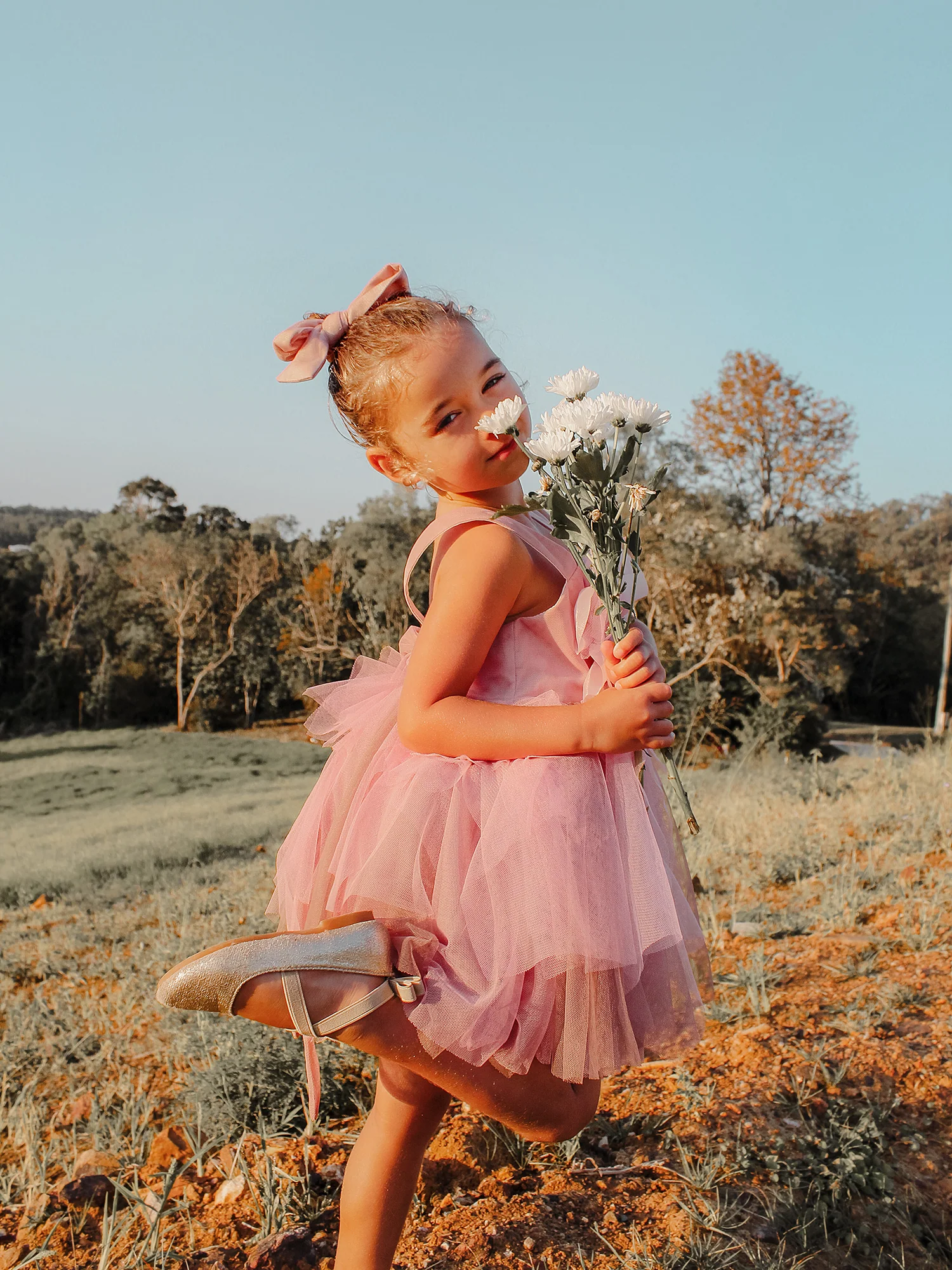 Cute Alert: Amazing as a flower girl dress or a birthday romper dress featuring an oversized handmade flower centerpiece.
